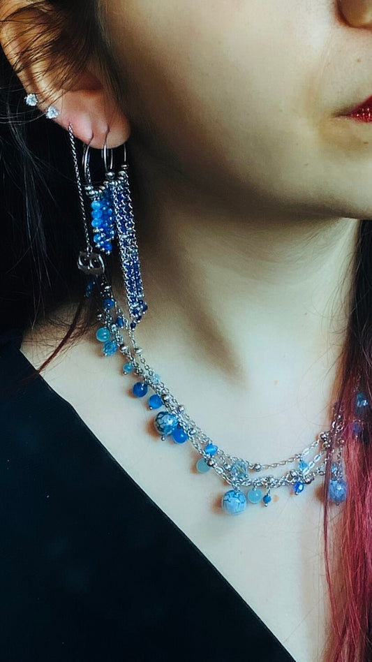 Orecchini pendenti lunghi con agata elettrolucidata blu - 🩷 Ultimi pezzi! 🟠 In esaurimento ⚡