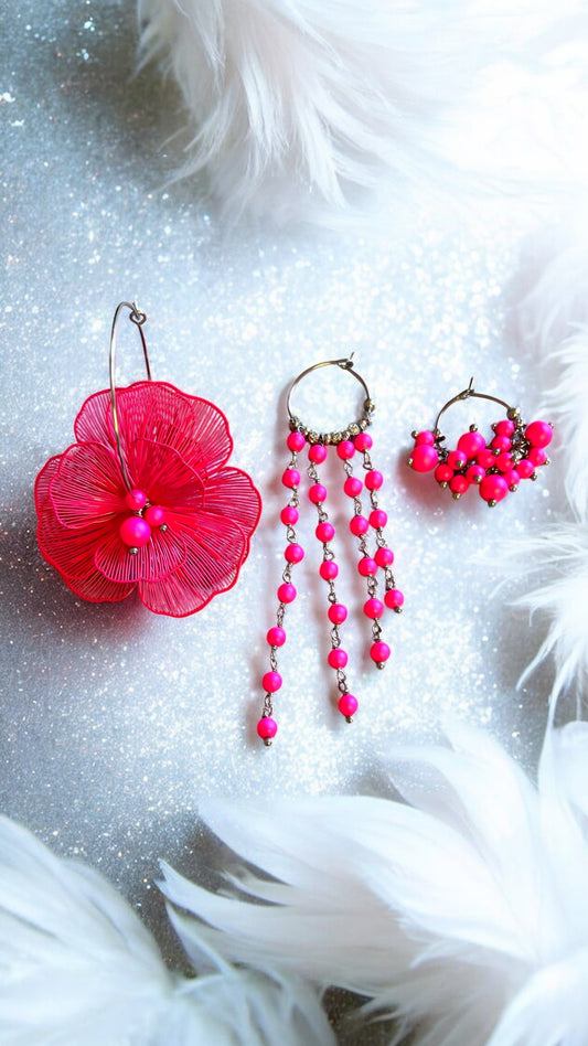 Mono orecchino Cascata Fluo 🌈 – Perle Swarovski in acciaio rosa fluo - 🩷 Ultimi pezzi! 🟠 In esaurimento ⚡