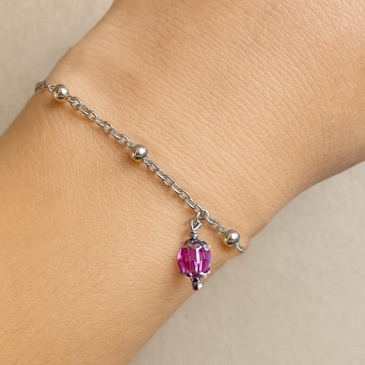 Bracciale elastico "Rugiada Preziosa" con corindone rubino fucsia