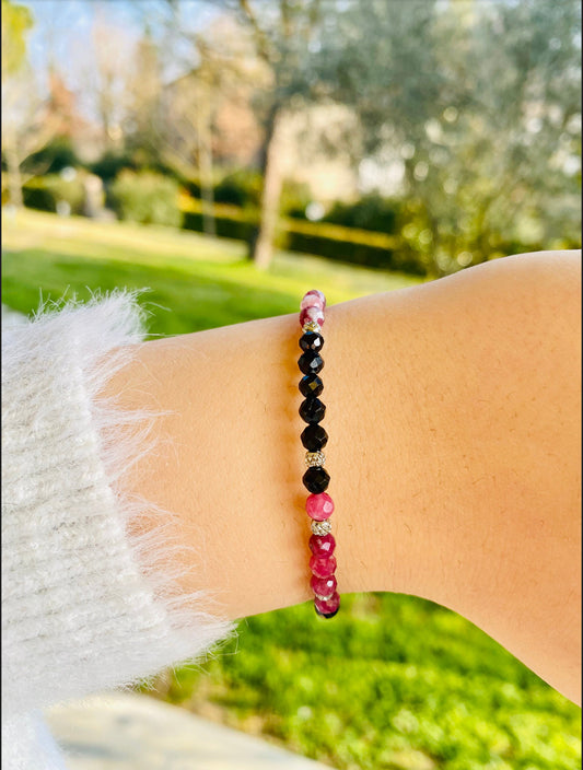 Bracciale in acciaio, tormaline e spinelli