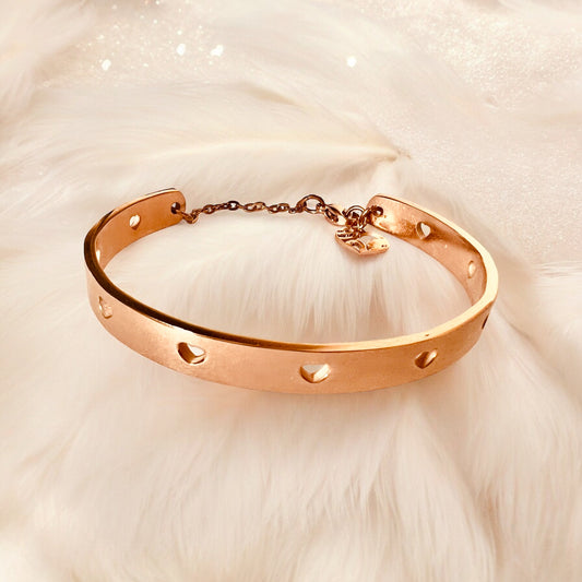 Bracciale rigido cuoricini in acciaio oro rosa