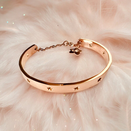 Bracciale rigido stelline in acciaio oro rosa