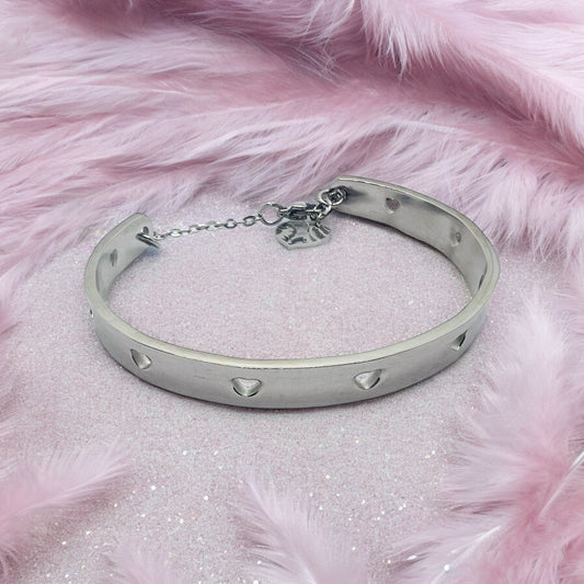 Bracciale rigido cuoricini in acciaio silver color
