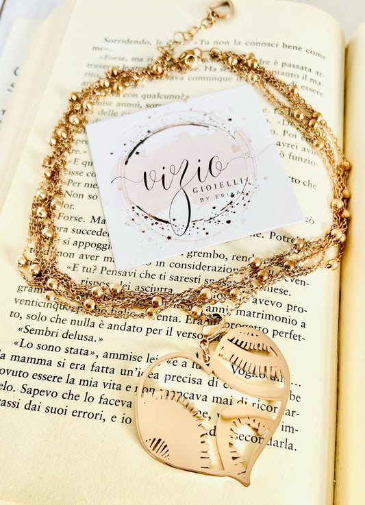 Girocollo luminoso in acciaio rosato Cuore Grande
