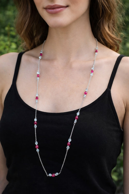 Collana 90 cm TrisVersale in acciaio con cristalli Swarovski e corallo