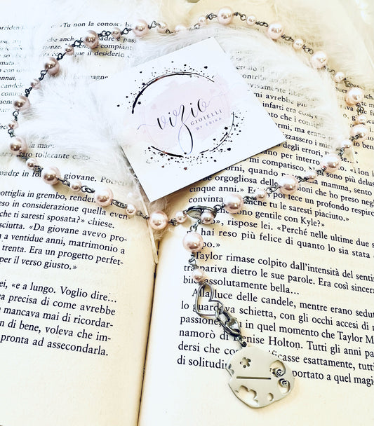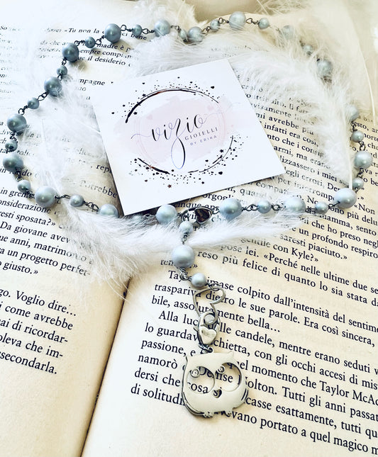 Girocollo Rosario cristalli Swarovski bianco perlescente con chiusura a cuore