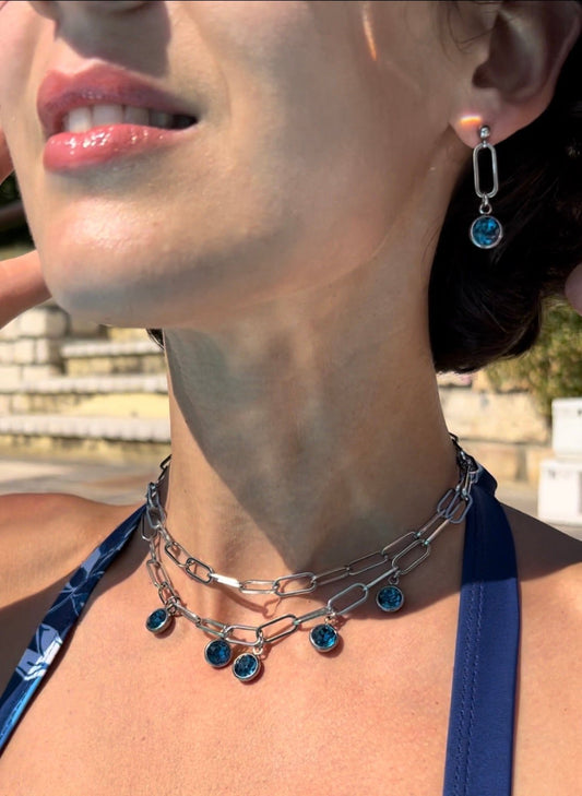 Girocollo Rosario cristalli Swarovski dreamy blue con chiusura a cuore