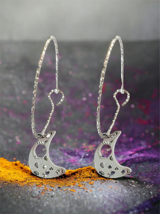 Orecchini a cerchio con charm in acciaio luna