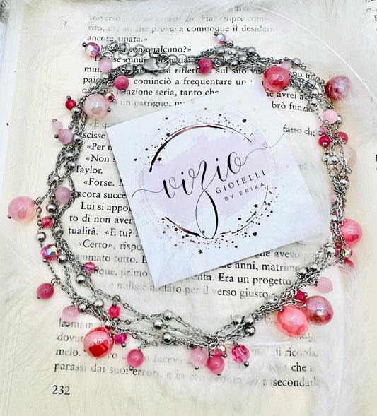 Girocollo Bubble multi filo in acciaio con agate elettrolucidate ROSA - 🩷 Ultimi pezzi! 🟠 In esaurimento ⚡