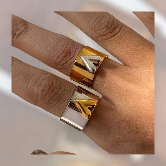 Anello in acciaio silver con cuore dorato in rilievo - 🩷 Ultimi pezzi! 🟠 In esaurimento ⚡