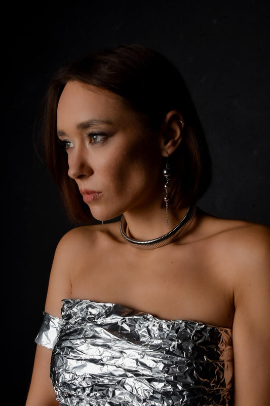 Orecchini pendenti in acciaio silver color - Collezione Luminosa