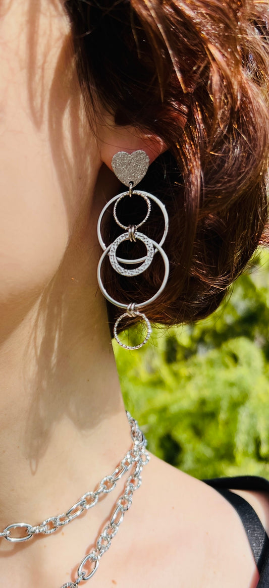 Orecchini a perno in acciaio Cuore con Cerchi Pendenti
