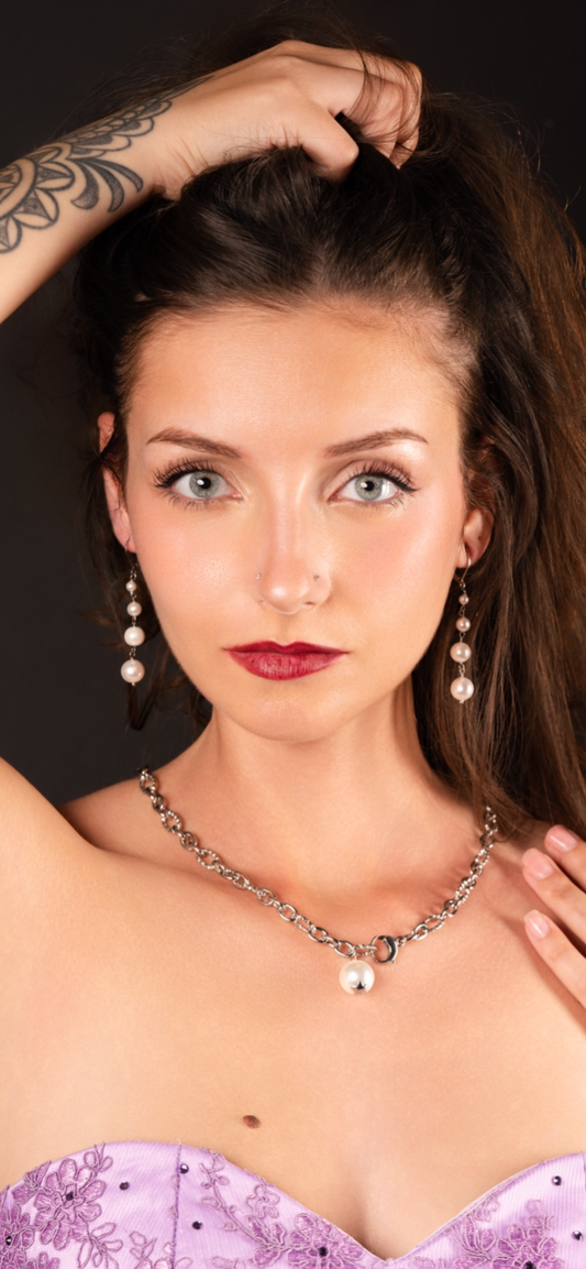 Orecchini in acciaio e perle lunghi