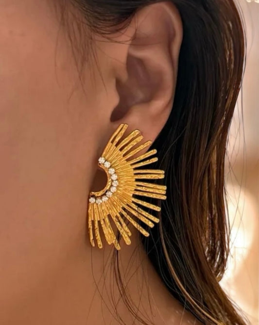 🌟 Mono orecchino cerchio con cristalli sabbia – Acciaio e cristalli