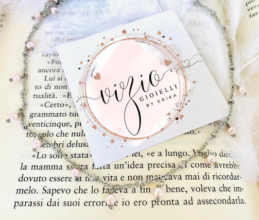 Collana lunga in acciaio e perle di conchiglia 90 cm