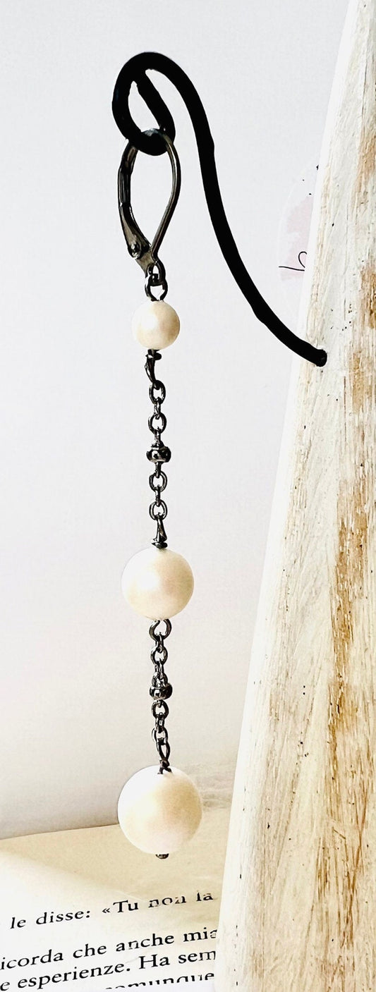 Orecchini pendenti 3 perle Swarovski bianco perlescente