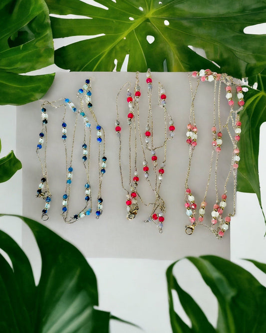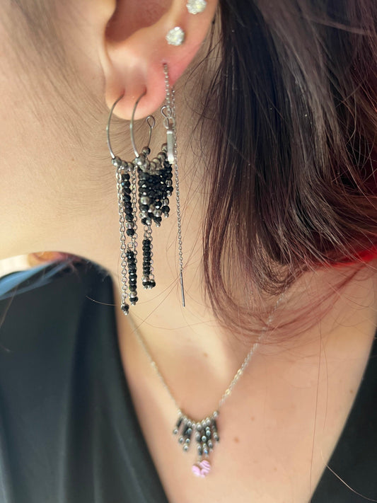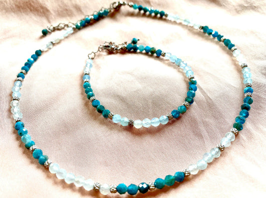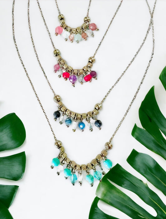Collana lunga in acciaio diamantato, Tormaline e acquamarine