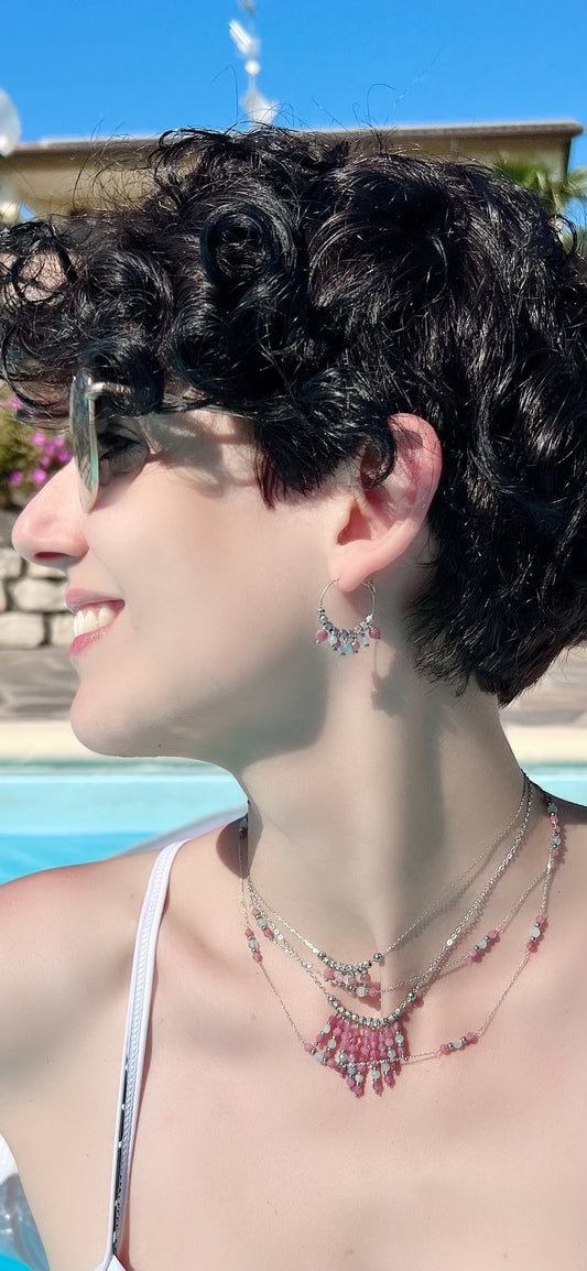 Orecchini in Acciaio Artigianali con tormaline e rubini
