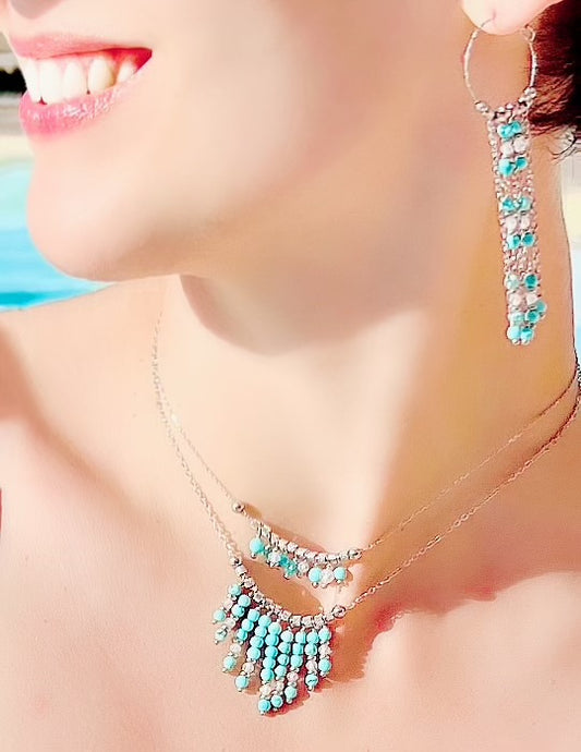 🌟 Esclusivi Orecchini Pendenti in Acciaio con Tormaline e Acquamarina 🌟