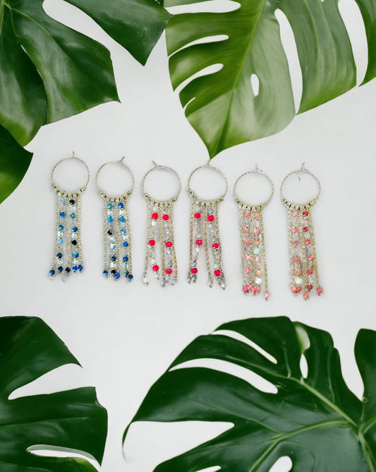 ORECCHINI CERCHIO LUNGHI con tormaline e acquamarine