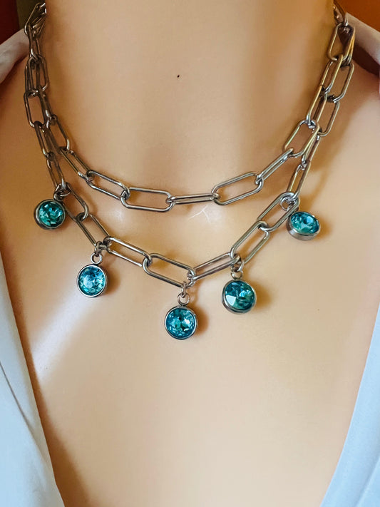Doppio girocollo in acciaio con 9 carati di Moissanite